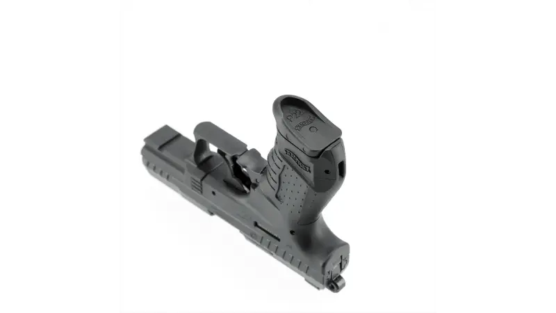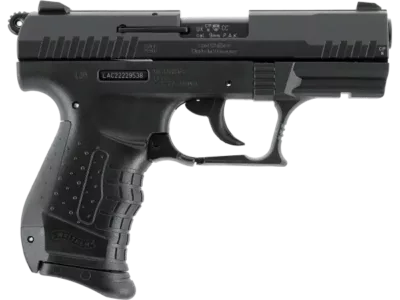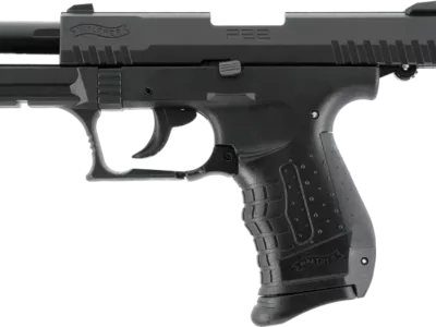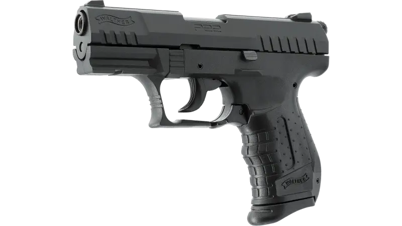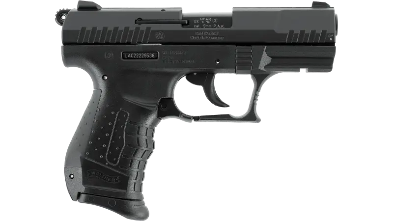 Le Walther P22 Ready en calibre 9 mm P.A.K. est une version optimisée du P22, pensée pour la défense grâce à son profil fin et son faible poids. Le modèle ne possède pas de sûreté manuelle, ce qui réduit le temps de mise en action, et sans levier de sécurité saillant, la glissière est encore plus mince et les dentelures prononcées permettent une prise sûre en cas de stress. On retrouve un chien apparent, un levier de déverrouillage du chargeur à palette et une ergonomie classique avec dos de poignée caoutchouté interchangeable (S/L inclus). Le chargeur 7 coups sert d’extension de poignée, le pontet présente un appui pour le doigt texturé et le rail Picatinny permet l’ajout d’accessoires.