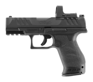Le Walther PDP Compact 4″ est une réplique CO2 dotée d’une culasse métallique. Compatible Optics Ready, elle accepte des plaques adaptatrices (en option) pour viseurs Vortex, Leupold, C-More ou Trijicon. Une visée ouverte est également intégrée.