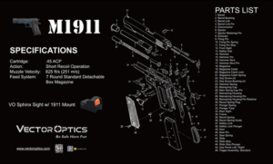Le tapis d’entretien M1911 est concu pour offrir une surface propre et pratique lors du nettoyage de votre arme. Avec ses dimensions compactes de 505 x 310 mm, il est parfait pour les pistolets de type M1911 ou autres armes de poing.
