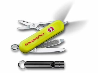 Le Victorinox Signature Lite Emergency Tool 0.6226.E808 Luminescent Yellow est un outil de secours très pratique. Soyez toujours bien préparé en ajoutant ce Victorinox Signature Lite Emergency Tool à votre kit de survie ! En cas d’urgence, vous avez ainsi toujours un stylo et une petite lampe à portée de main. En plus, le Signature Lite est doté d’un couteau, de ciseaux, et d’une lime qui peut faire office de tournevis. Ce couteau suisse polyvalent vous offre les outils essentiels pour vous sortir des situations d’urgence, et est également livré avec son sifflet d’urgence.