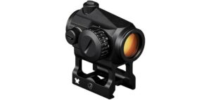 Taille du point : 2 MOA.Parallaxe : Sans.Couleur du point : Rouge.Graduation : 1 click = 1 MOA.11 niveaux d’intensité.Livré avec : protection, outils de réglage et pile CR2032.Point rouge Waterproof