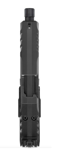 POIGNEE FULL SIZE ET CULASSE DE 4,5 »CANON FILETE DE 5,1 » (1/2 »-28 UNEF)DETENTE DYNAMIC PERFORMANCEPUITS DE CHARGEUR EN ALUMINIUM2 CHARGEURS DE 18 COUPS AVEC FOND EN ALUMINIUMARRETOIR DE CULASSE DES DEUX COTES, VERROU DE CHARGEUR REVERSIBLE, RAIL D’ACCESSOIRES MIL-STD-1913